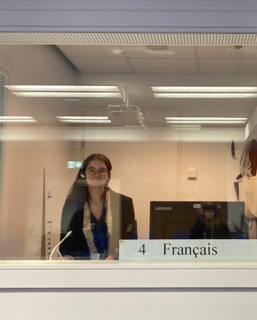 The interpreter goes back and forth between participants. This type of interpretation is prefered for meetings or events with a limited number of participants.